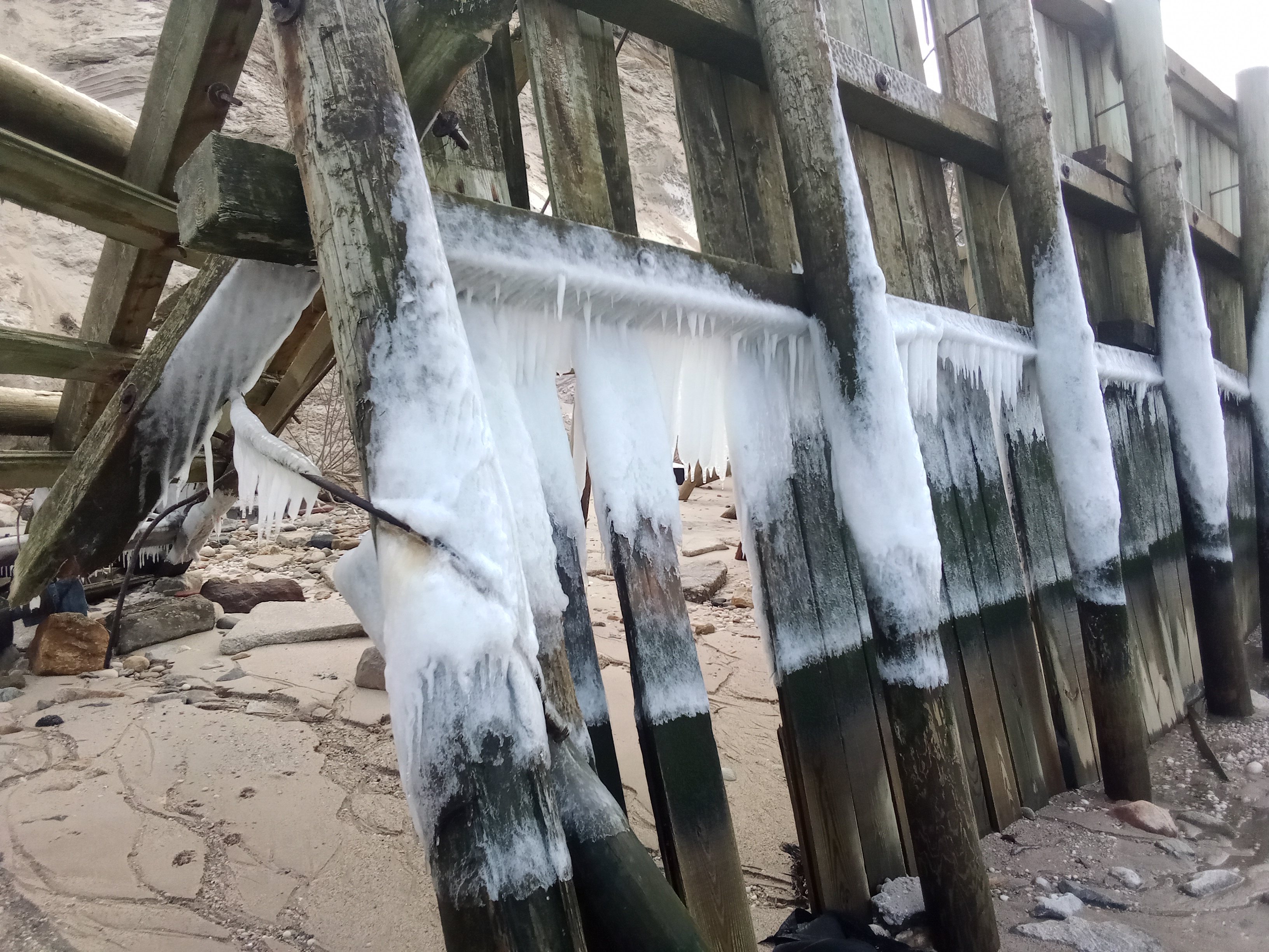2025-Jan-25 19:46:12 Ice formations at the beach. |