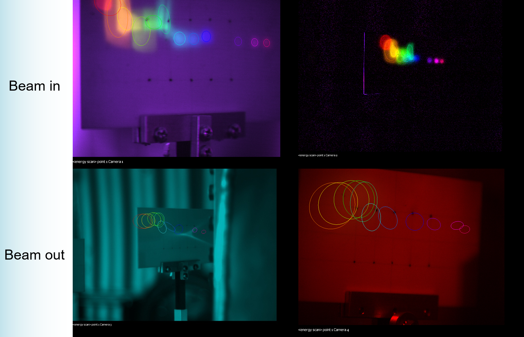 Cameras 1 and 2 point at fluorescent screens upstream of the magnets and cameras 3 and 4 show the beam coming out. The Brookhaven National Laboratory NASA Space Radiation facility (NSRL) was used for 50-250MeV proton beams and the BNL Tandem Van de Graaff for deuteron beams equivalent to 10-50MeV protons. The results show transmission over the massive 10-250MeV energy range (a factor of 5.3 in momentum) and the progression of the beam centres from one side of the screens to the other show the beam orbits were as expected. The permanent magnets (built by SABR Enterprises, LLC.) delivered up to 1.85 Tesla of field to bend the beams on this tight radius. More information on the design: https://www.bnl.gov/newsroom/news.php?a=222471 #accelerators #physics |