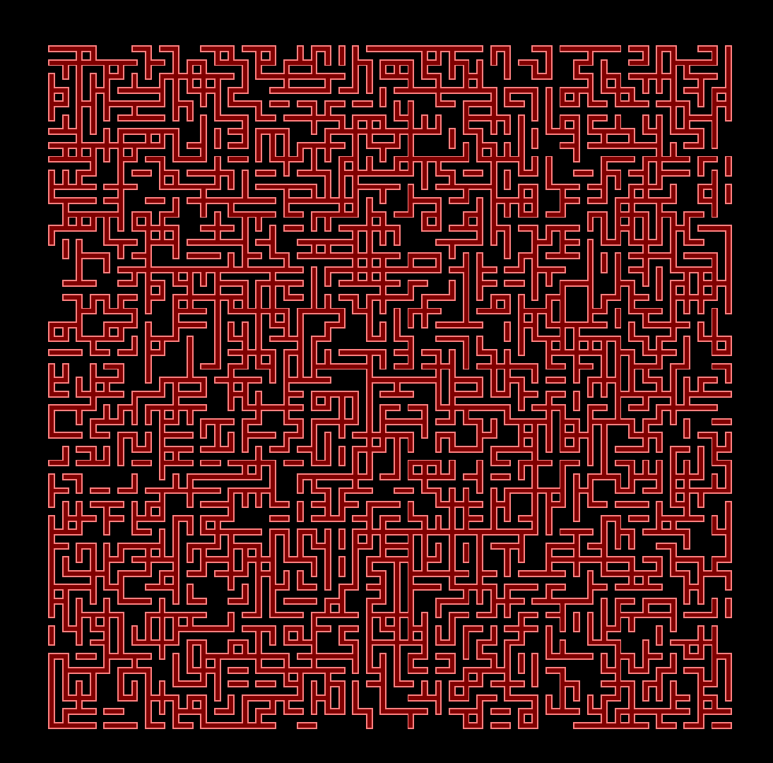 This is a navigatable version of a randomly-generated maze I made once. Navigate with arrow keys or mouse (annoying). Press Q or Escape to quit.